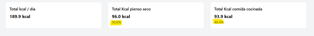 - Kcal totales que representa la comida casera que le vas a dar